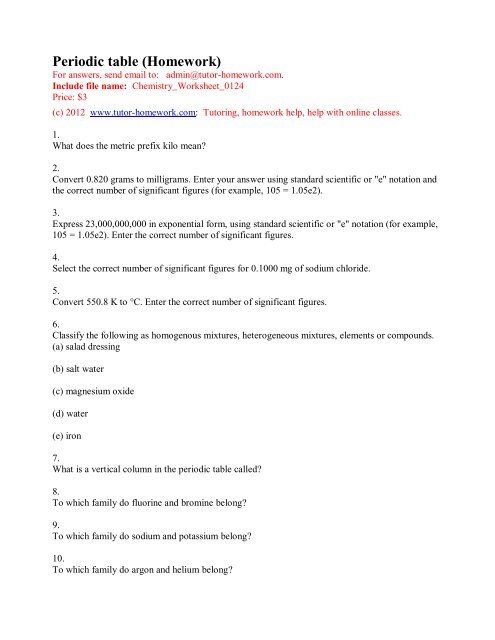 Chemistry Periodic Table Worksheet Ii Comcast Net