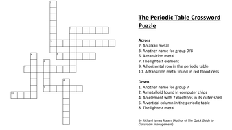 Chemistry Crossword Puzzle The Periodic Table Includes Answer Key