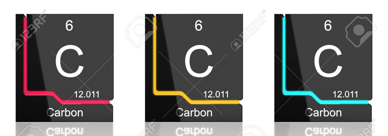 Carbon Element Symbol From The Periodic Table In Three Colors