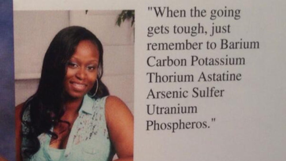 55 brilliant and funny yearbook quotes to inspire you june 23 2015 19 comments teachers love to tell you that high school is the best time of your life. Even if an alien civilizations table werent plotted out in the castle with turrets shape we humans favor their spiral or pyramidal or whatever shaped periodic table would naturally pause after 118 elements. Periodic table quotes 17 quotes as a second year high school chemistry student i still have a vivid memory of my excitement when i first saw a chart of the periodic table of elements.