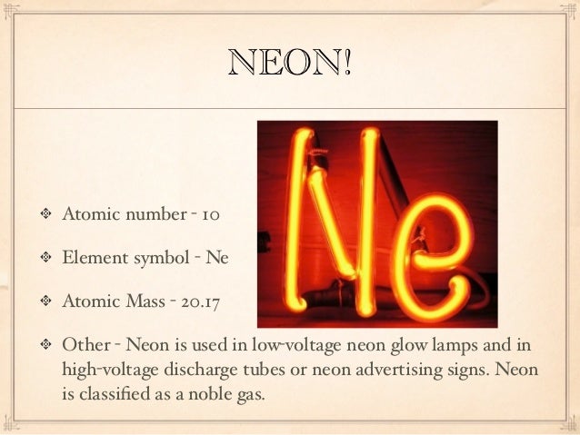 Neon By Stacy Rodriguez Symbol Ne Atomic Number 10 Atomic Weight
