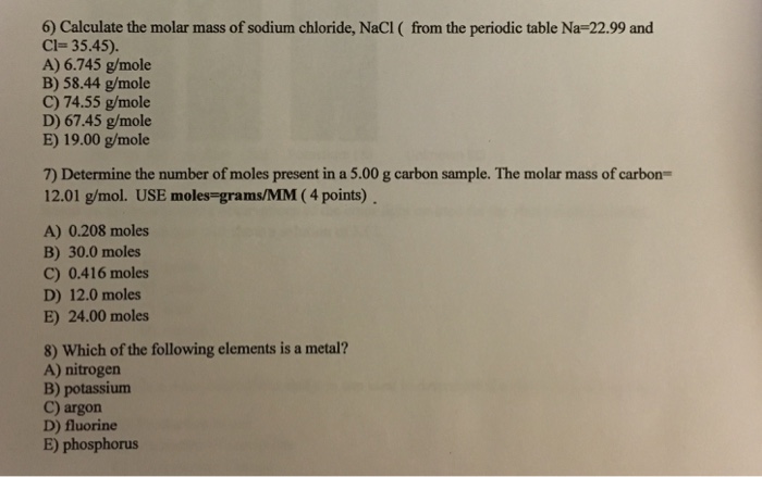Solved Calculate The Molar Mass Of Sodium Chloride Nacl