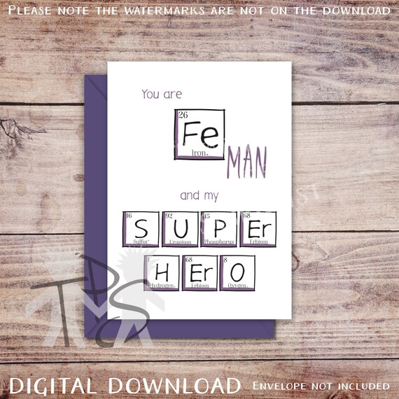 Printable Iron Anniversary Card Cute Periodic Table 6th Etsy