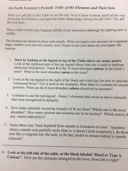 Solved An Earth Scientist S Periodic Table Of The Element