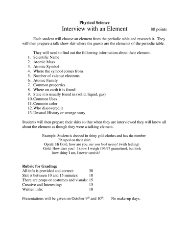 Periodic Table History Essay Rubric Nykbzp Nasantada Info