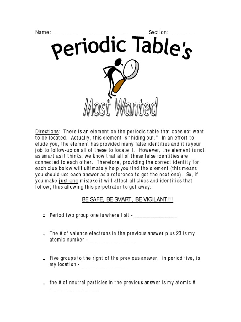 Periodic Tables Most Wanted Student Ws Proton Ion