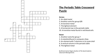 Periodic Table Crossword Puzzle With Answers Teaching Resources