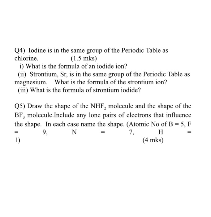 Solved Q4 Iodine Is In The Same Group Of The Periodic Ta