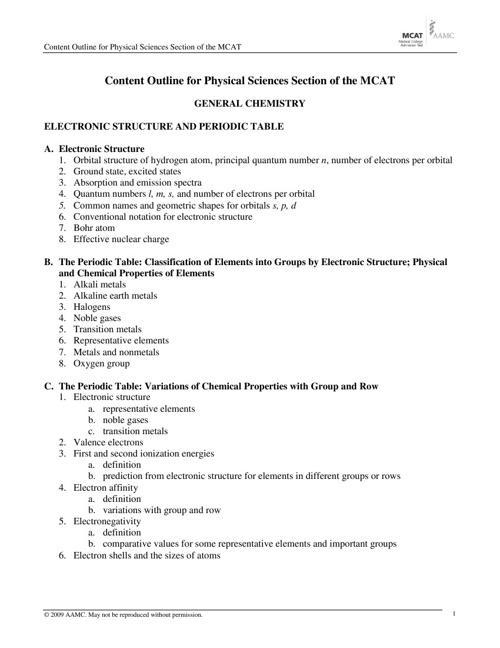 Electronic Structure And Periodic Table Mcat Review