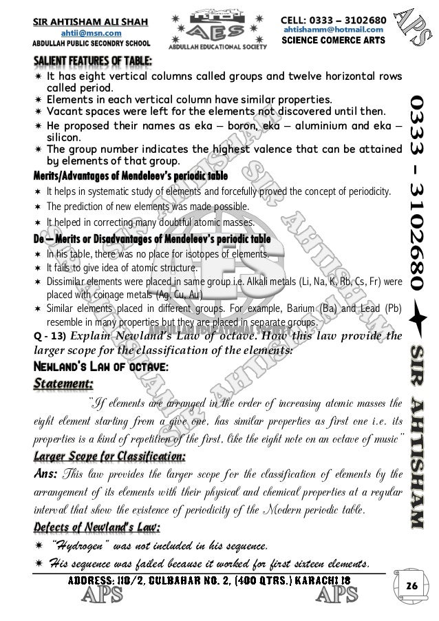 Notes On Mendeleev S Periodic Table Grade 10 Science