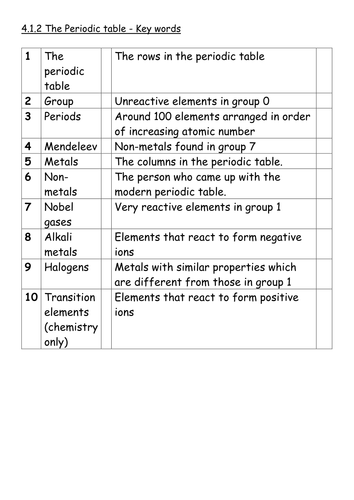 Gcse Chemistry Key Words Ocr Additional Gateway C4 The Periodic