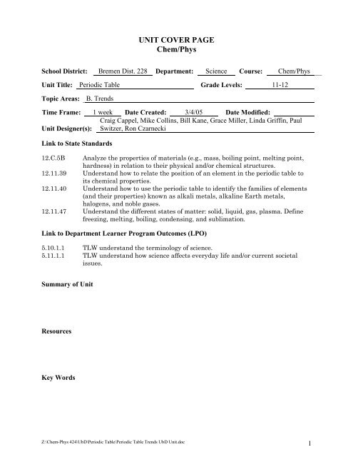 Unit Iv Periodic Table Trends Bremen High School District 228