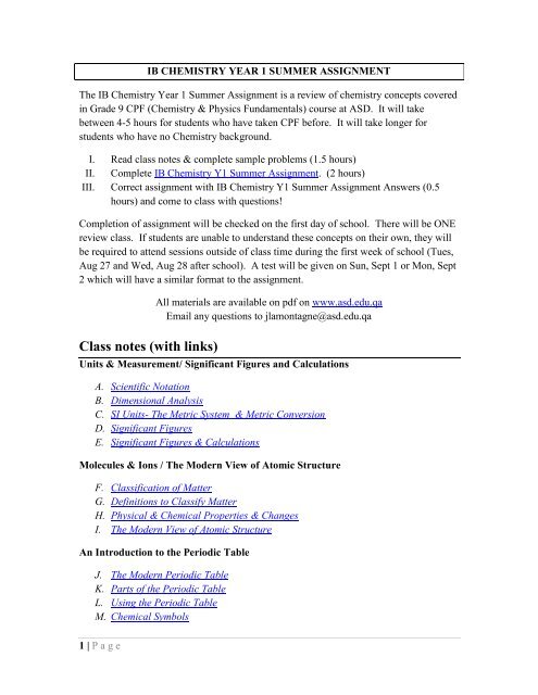 Ib Chemistry Y1 Summer Work 2013 Assignment