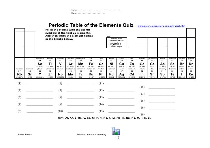 What Are The First 20 Elements In The Periodic Table Quora