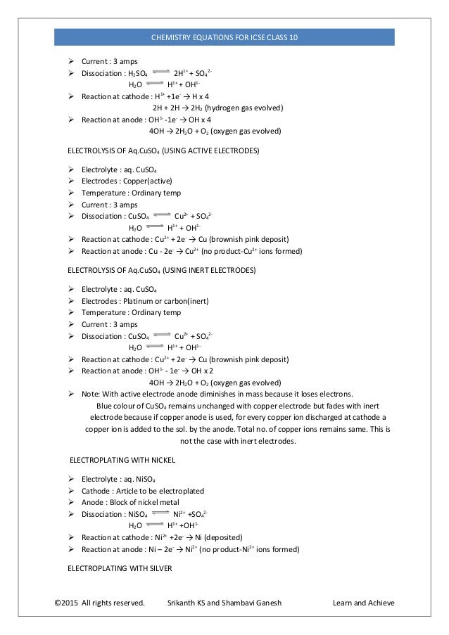 Chemistry Equations For Icse Class 10