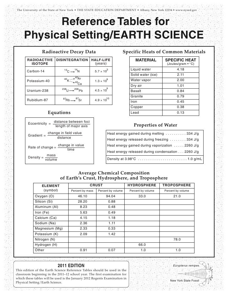 Reference Tables For Physical Setting Earth Science Pdf Free