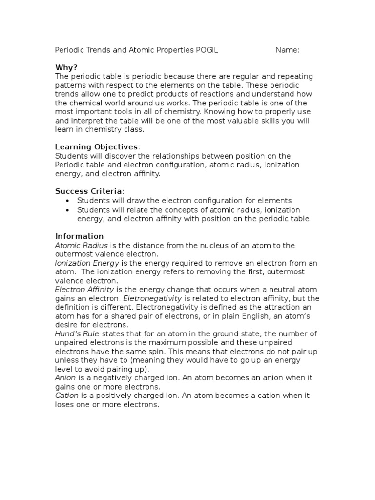Pogil Activity 2013 Periodic Trends Using Interactive Pt