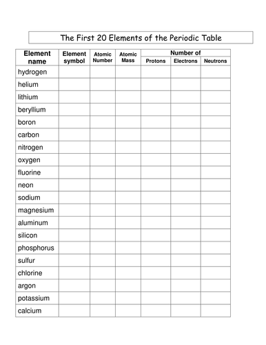 Periodic Table 1st 20 Elements Worksheets Teaching Resources Tpt