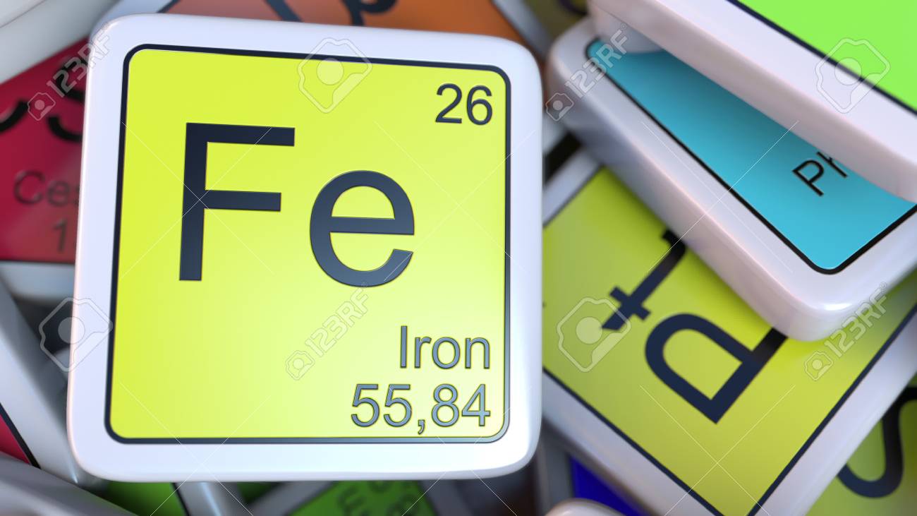 Iron Fe Block On The Pile Of Periodic Table Of The Chemical