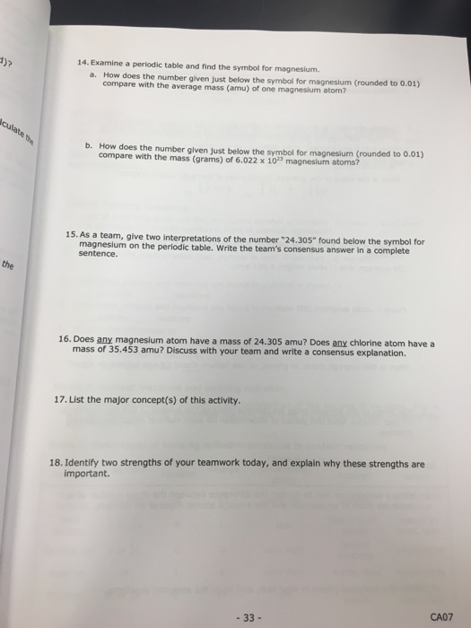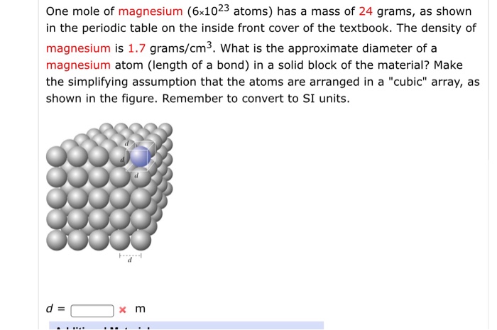 Solved One Mole Of Magnesium 6 1023 Atoms Has A Mass Of