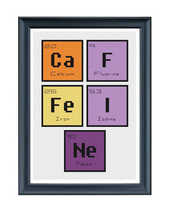 Cross Stitch Pdf Periodic Table Words Caffeine Cross Stitch Etsy