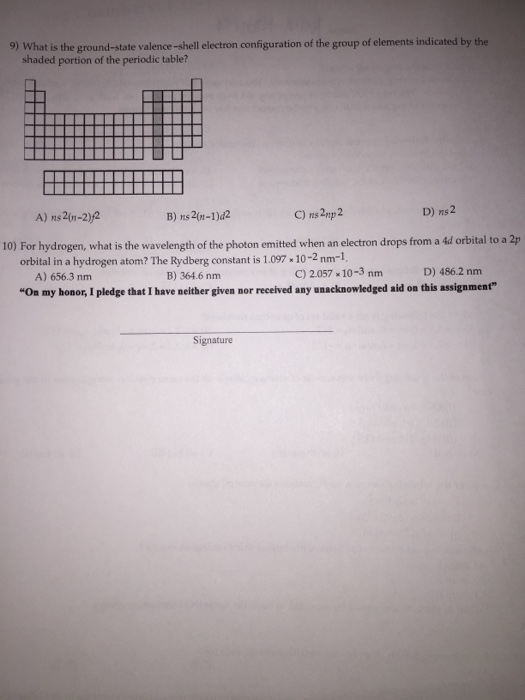 Periodic Table Valence Shell Electron Configuration