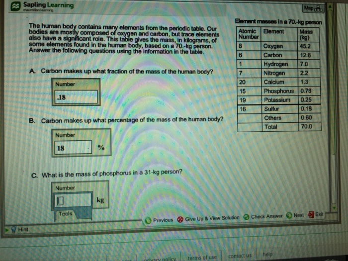 Solved Apling Learning Element Masses In A 70 Kg Person
