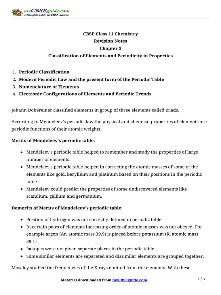 Chemistry Notes Class 11 Chapter 3 Classification Of Elements And Per