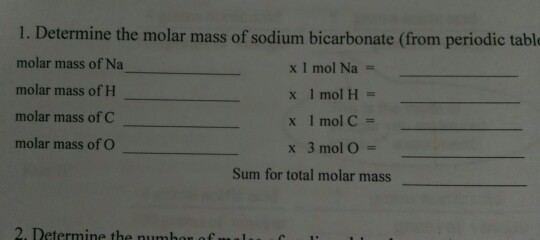 Solved Determine The Molar Mass Of Sodium Bicarbonate Fr