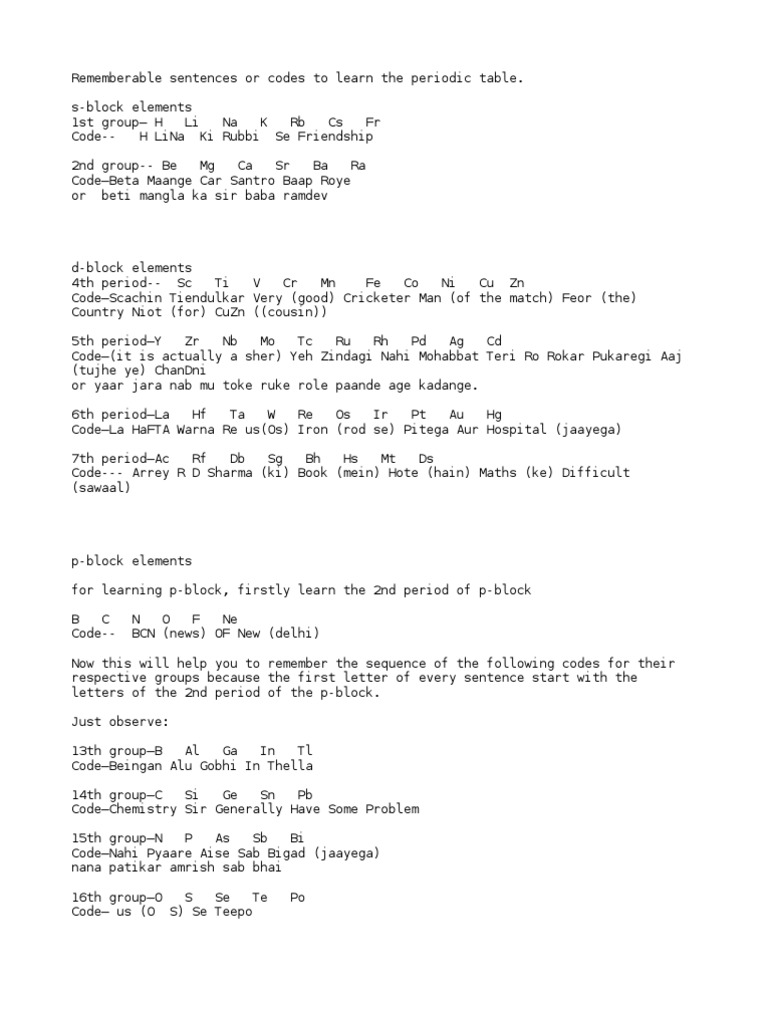 Learn Complete Periodic Table In Hindi Blockwise Using Hindi Rhymes