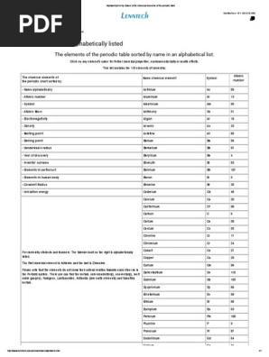 Alphabetical List By Name Of The Chemical Elements Of The Periodic