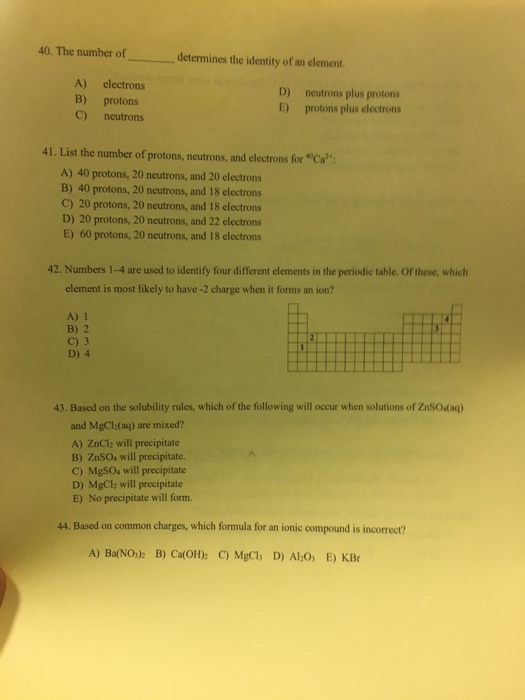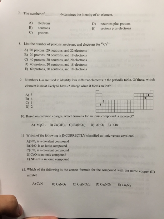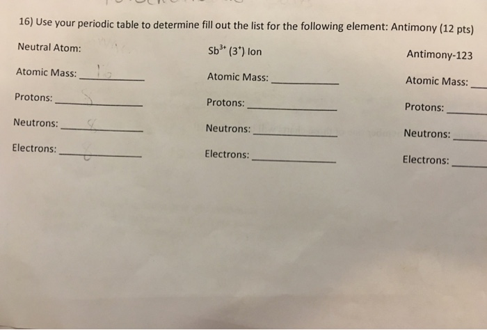 Solved Use Your Periodic Table To Determine Fill Out The