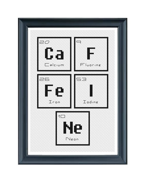 Cross Stitch Pdf Periodic Table Words Caffeine Cross Stitch Etsy