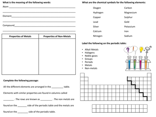 Free Periodic Table Worksheets Middle School