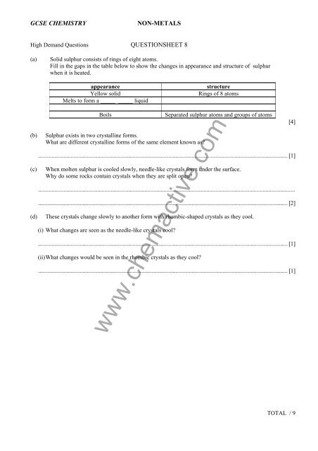 Gcse Chemistry Non Metals