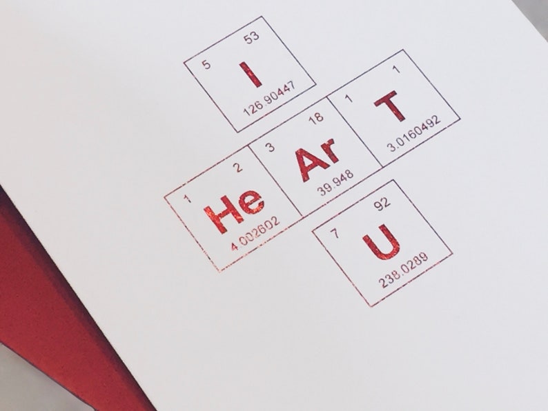 Red Metallic Foil Valentines Day Card Periodic Table Of The Etsy