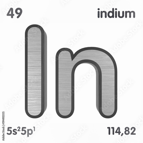 Indium Symbol On Chemical Round Flask Element Number 49 Of The