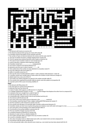 Gcse Chemistry Periodic Table Crossword Answer Sheet Teaching