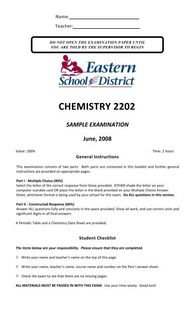 Chemistry 2202 Sample Exam 2008 2 Pdf