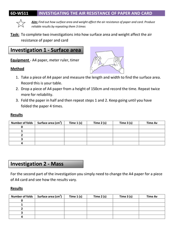 Air Resistance Of Paper And Card By Erhgiez Teaching Resources Tes