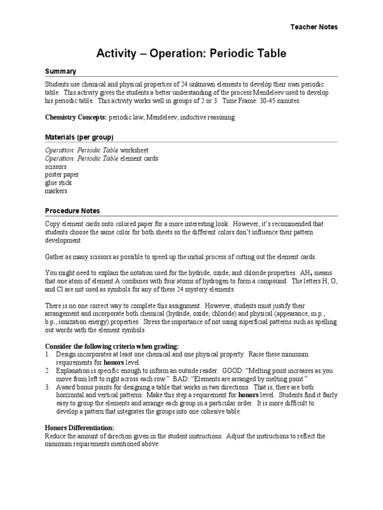 Periodic Table Scavenger Hunt Answer Key Directions Using Your